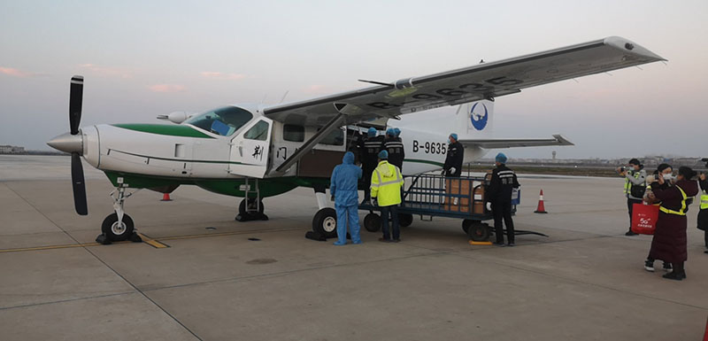 荊門通航9635機(jī)組執(zhí)行上海至襄陽(yáng)緊急防疫物資運(yùn)輸任務(wù)